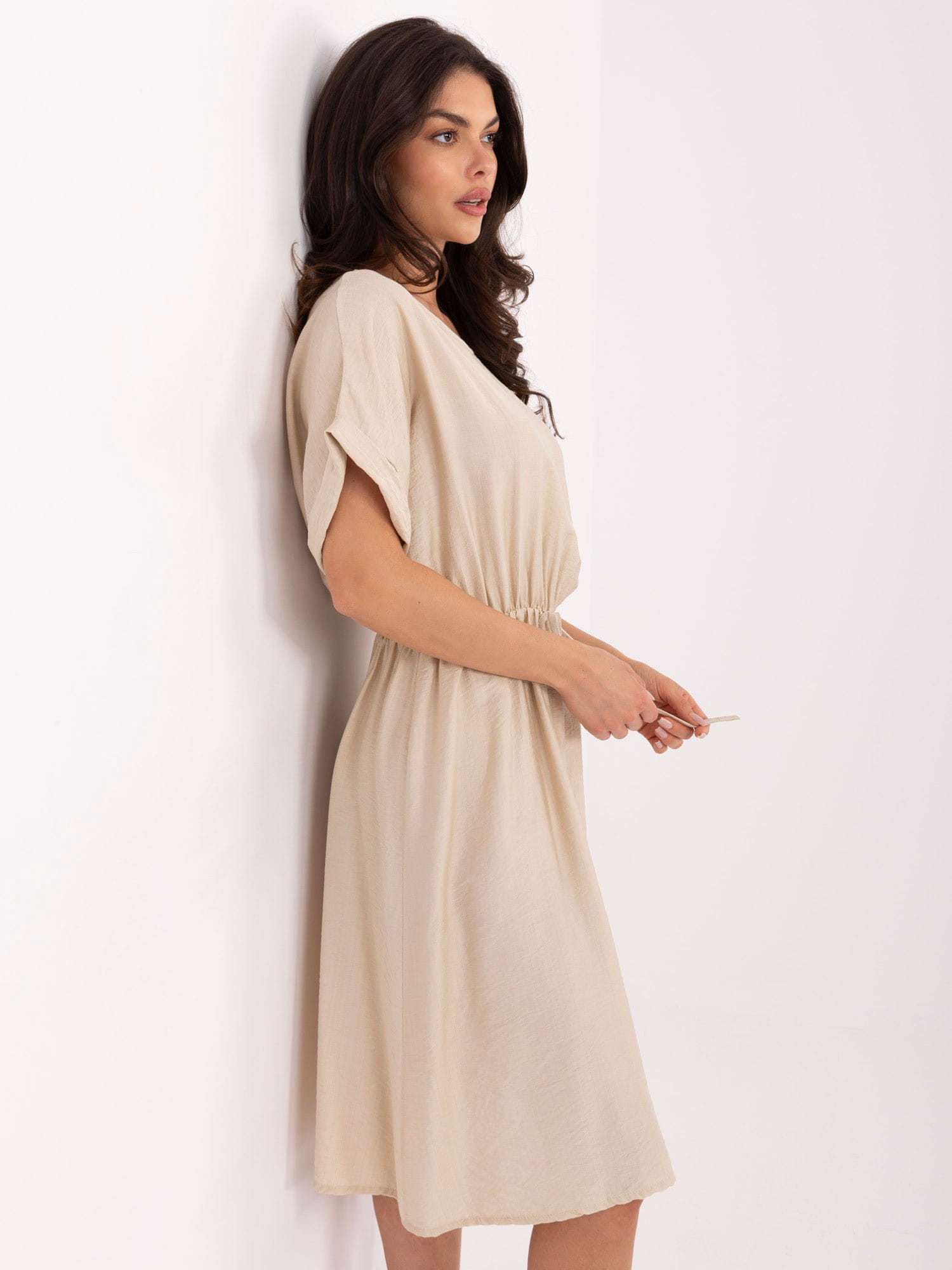 Letnia sukienka z wiskozy w beżowym kolorze to uniwersalny i stylowy model, odpowiedni do letnich stylizacji.