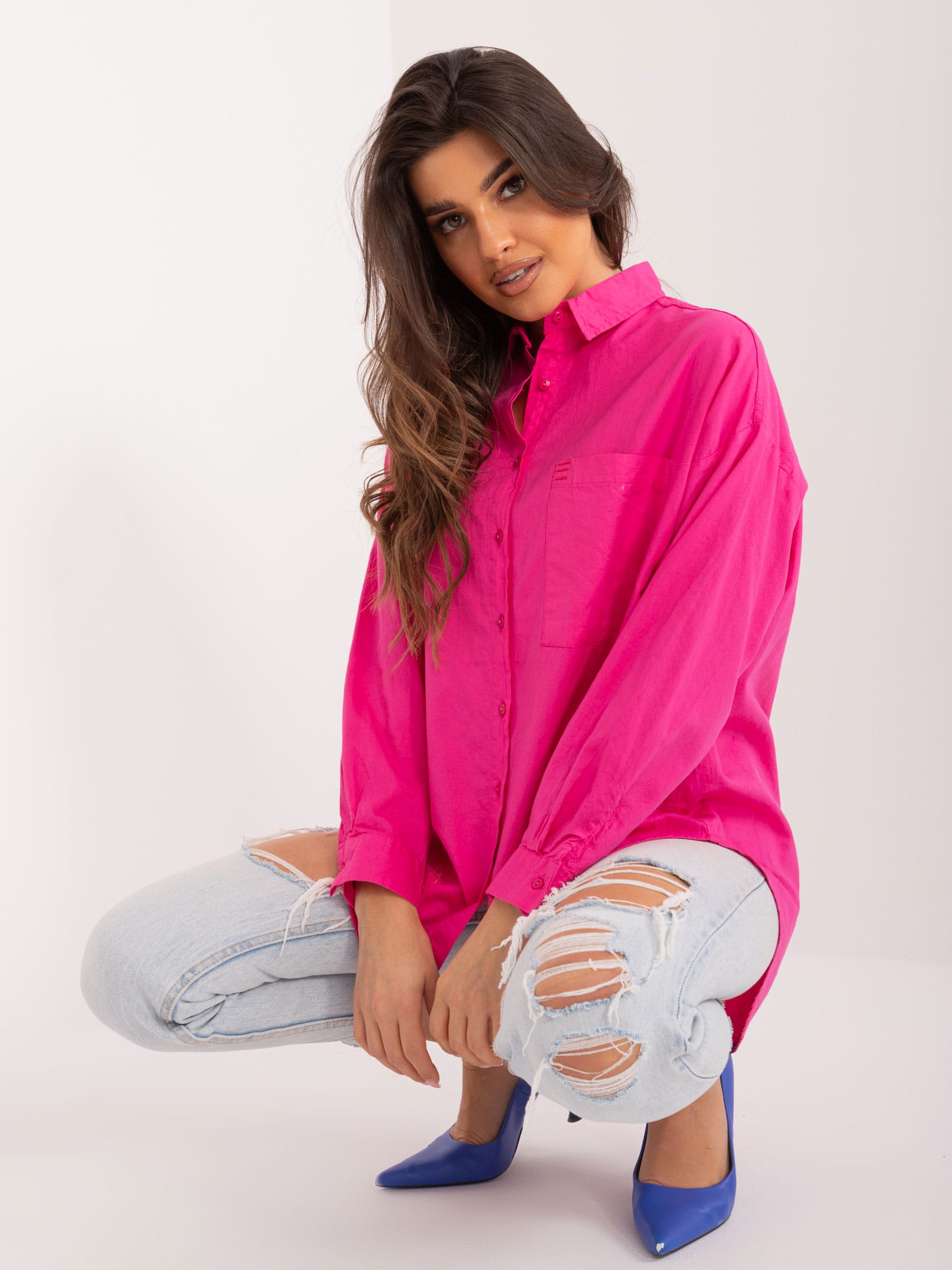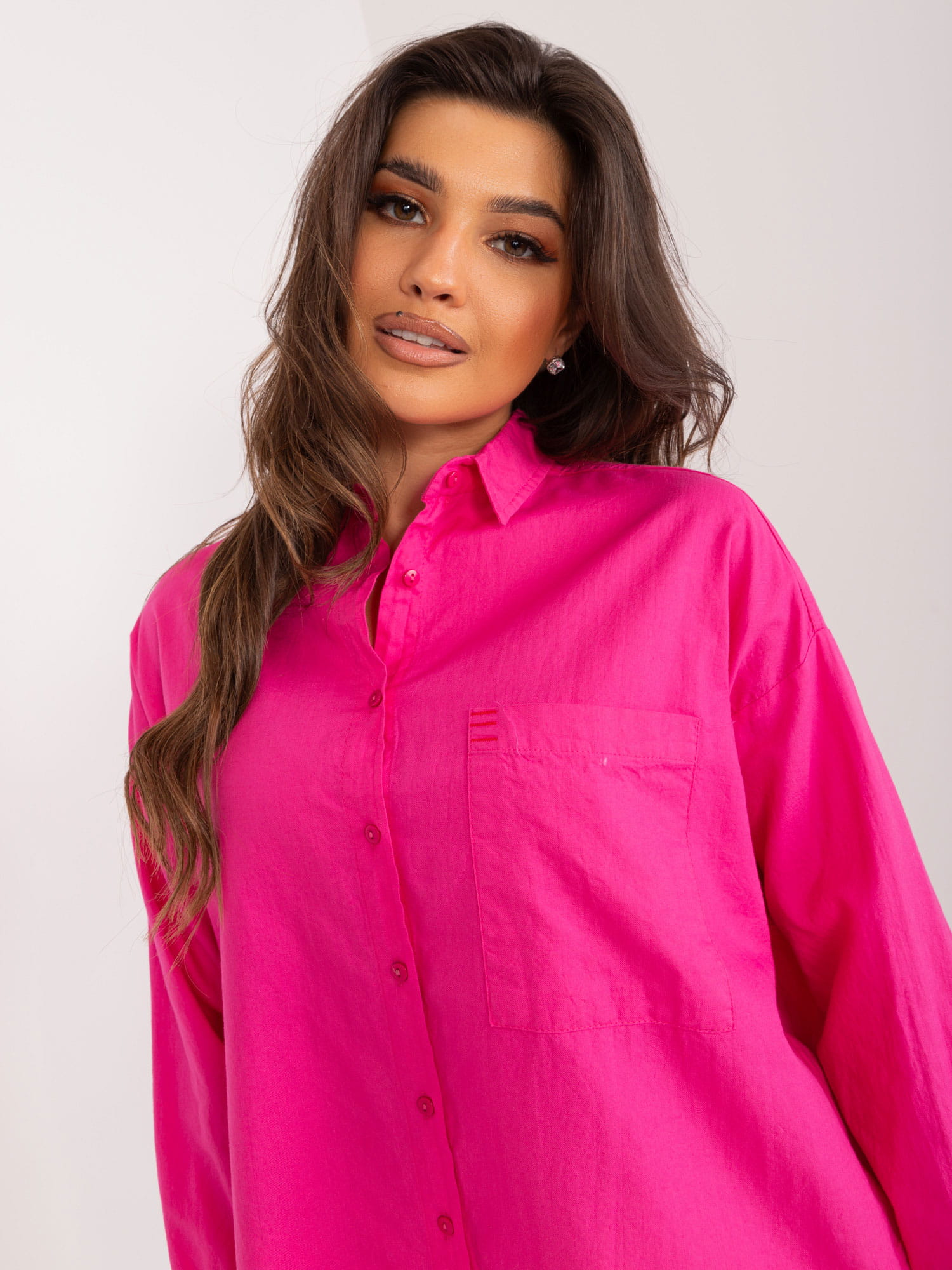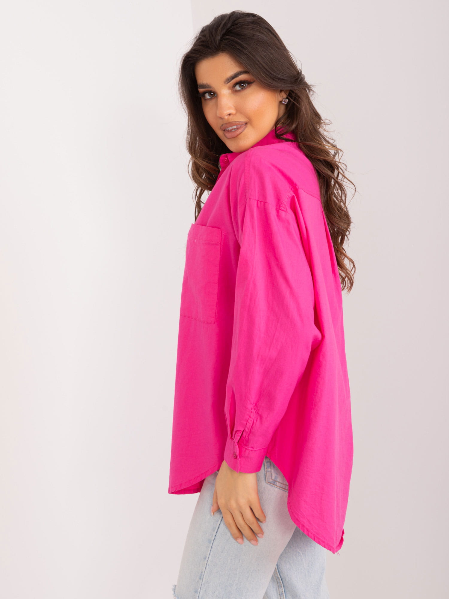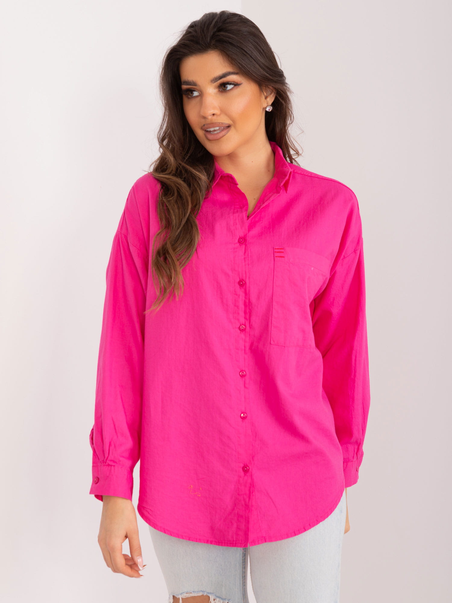 Casualowa koszula oversize z bawełny fuksjowa