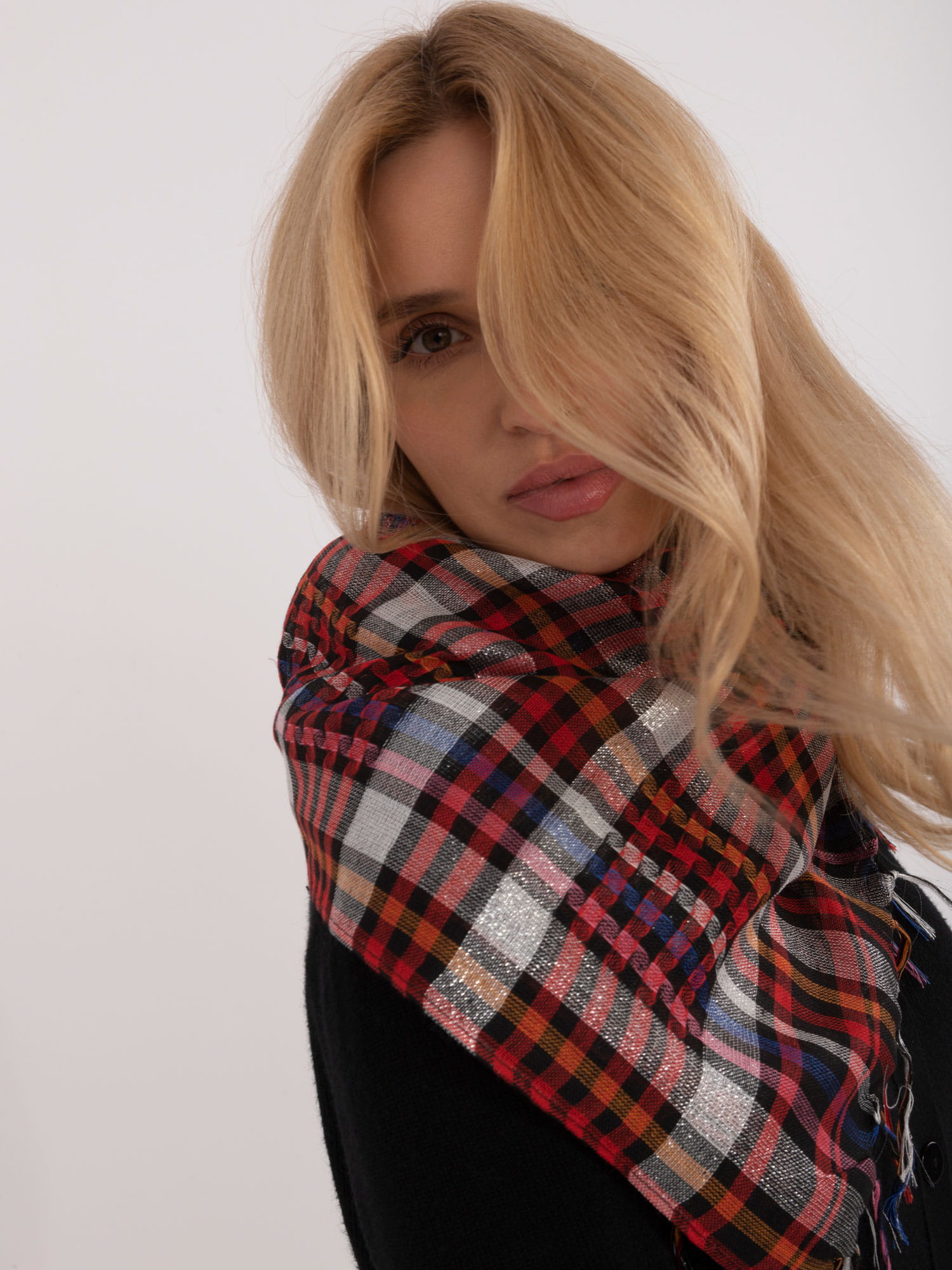 Chustka damska w kratę z błyszczącą nicią