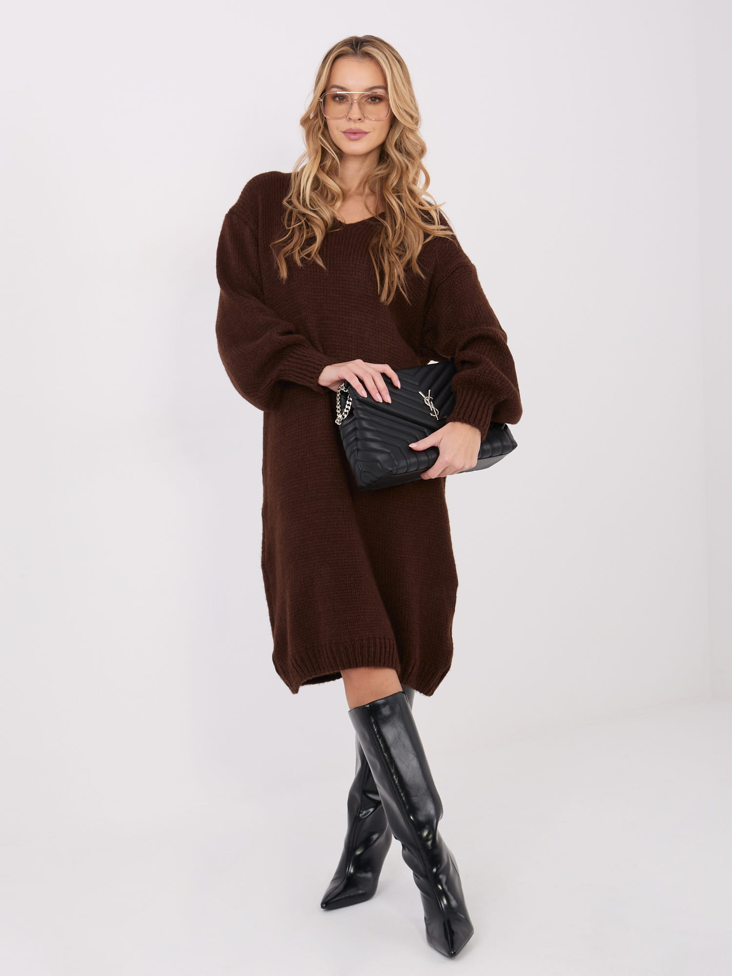 Ciemnobrązowa sukienka dzianinowa oversize midi