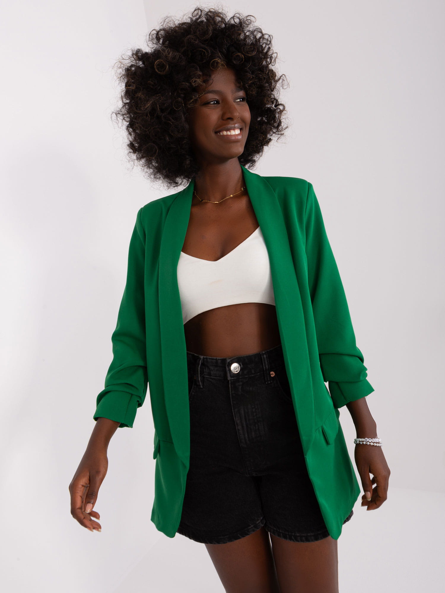 Ciemnozielona marynarka damska z marszczonymi rękawami