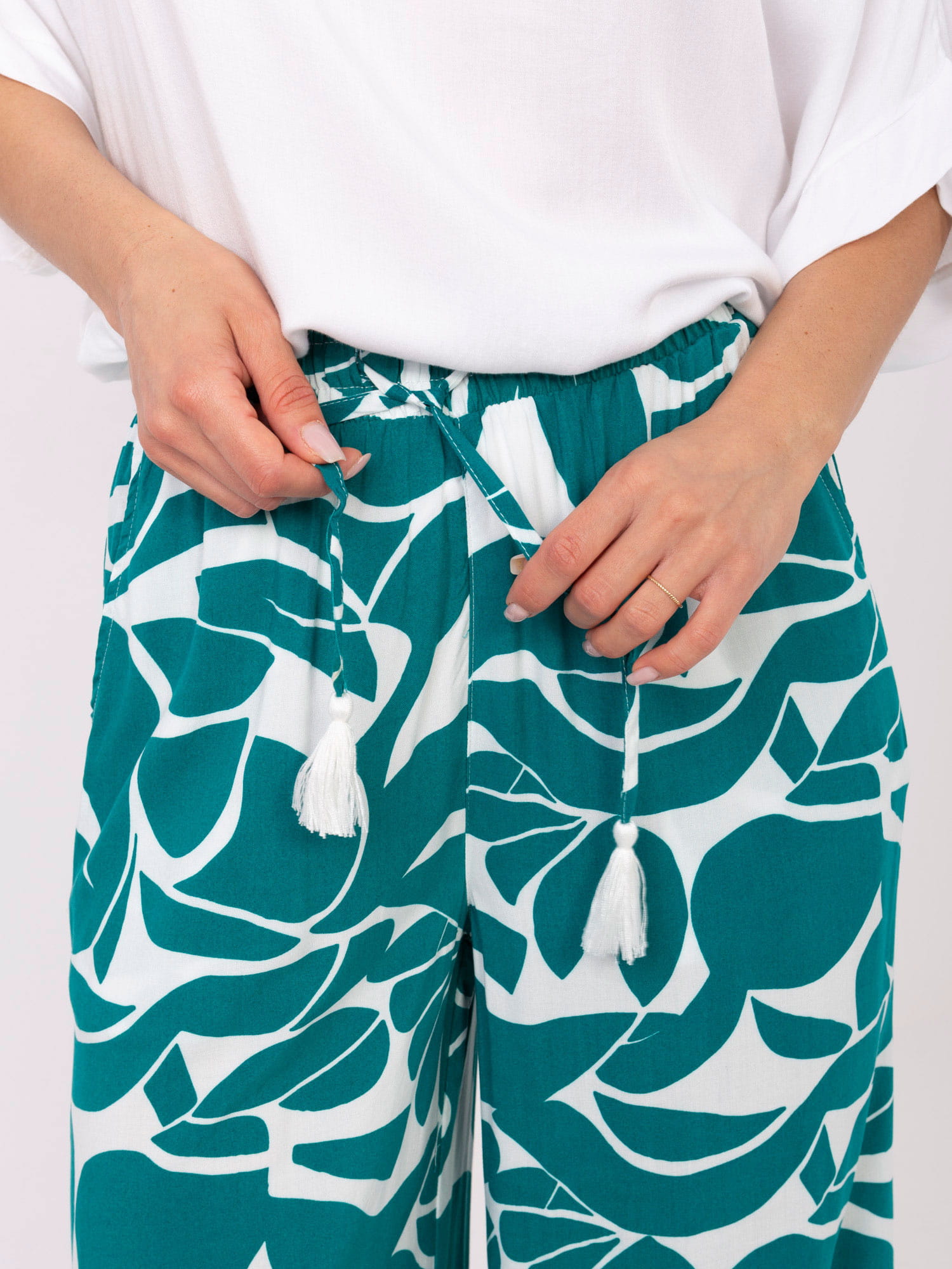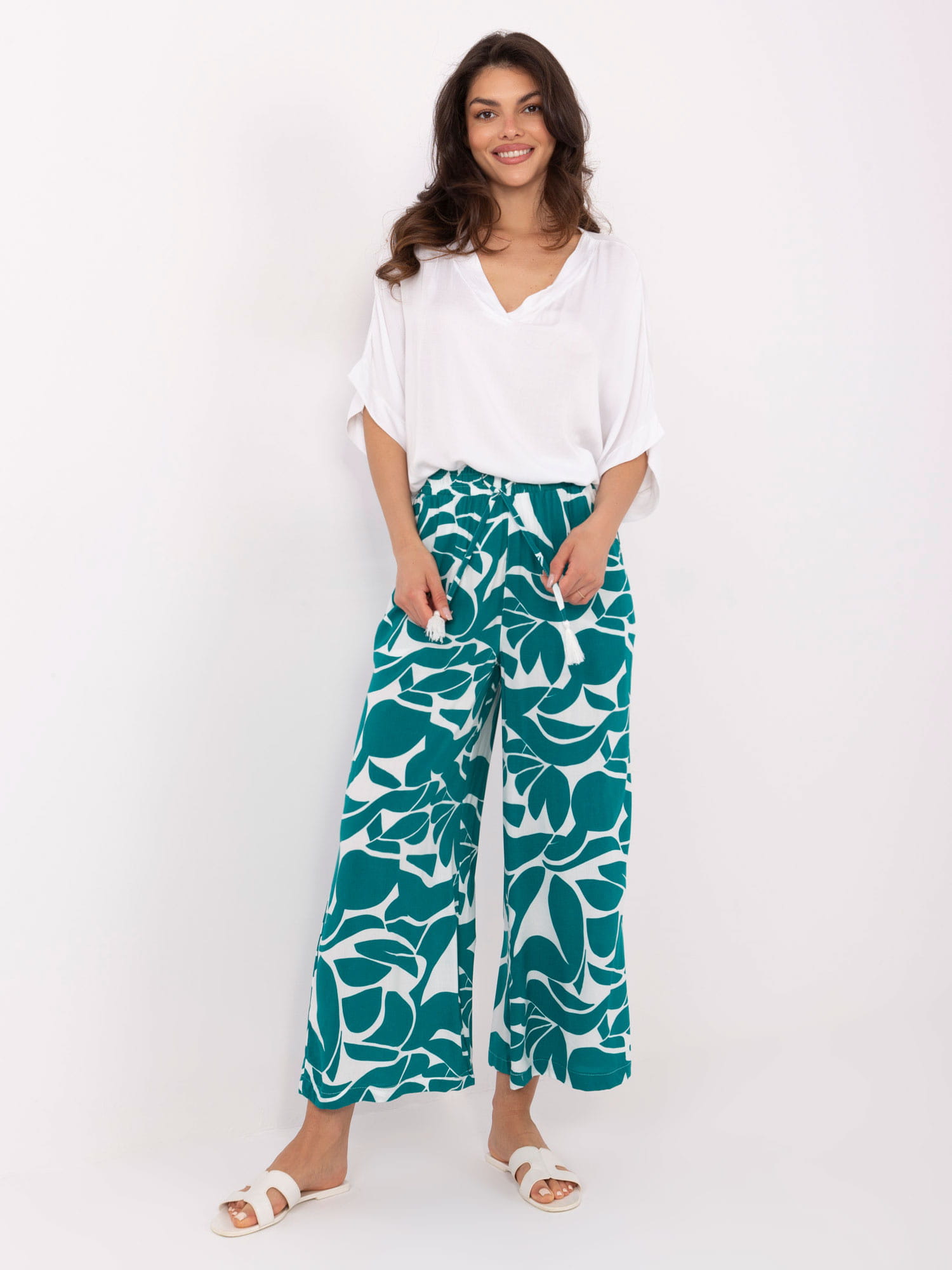 Letnie, ciemnozielone spodnie z wiskozy - idealne do stylizacji w casualowym stylu na co dzień, do pracy, popołudniowe zakupy, czy spotkania z przyjaciółką.