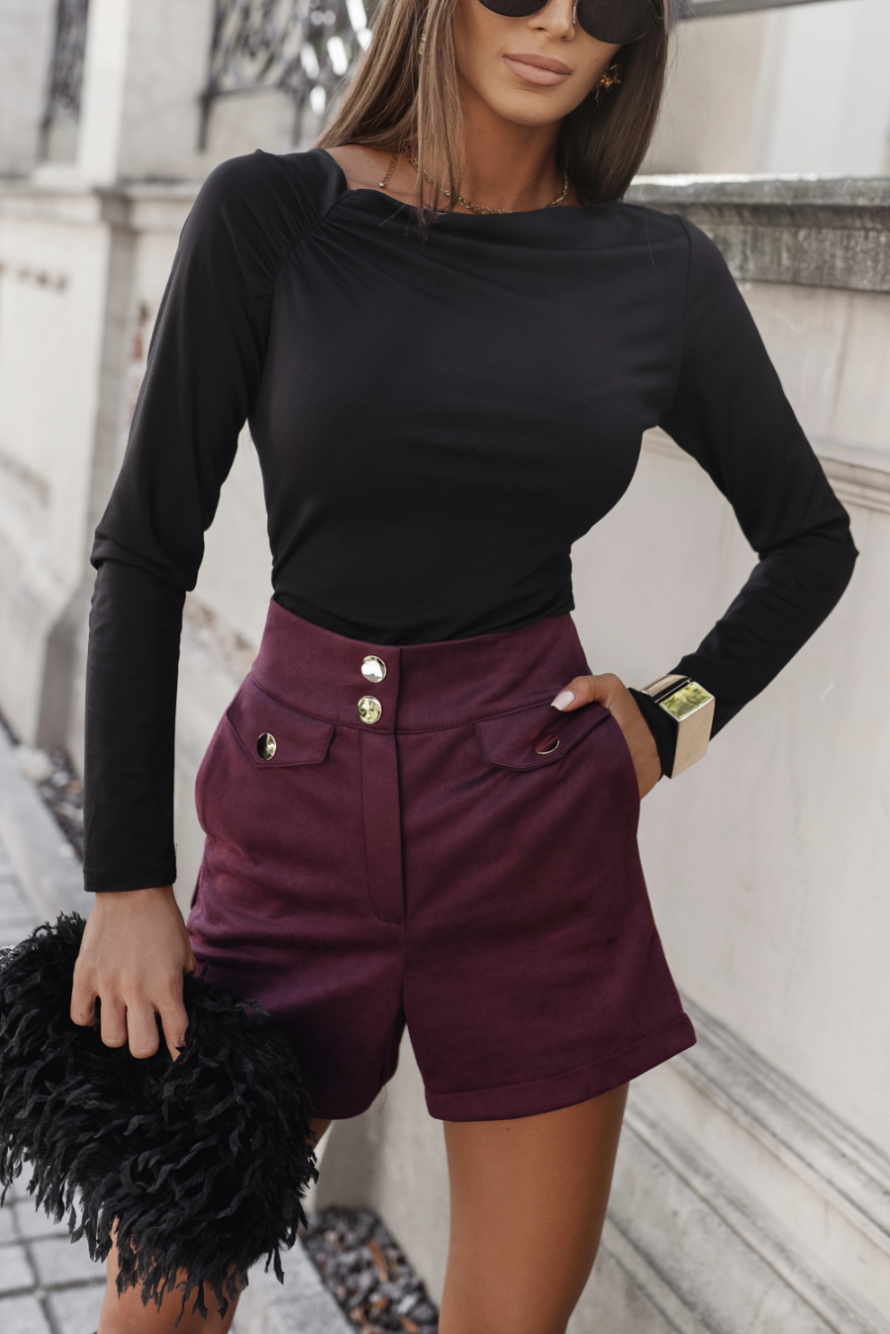 Czarna bluzka z długim rękawem i symetrycznym dekoltem to połączenie minimalistycznego designu, elegancji i komfortu podczas noszenia.