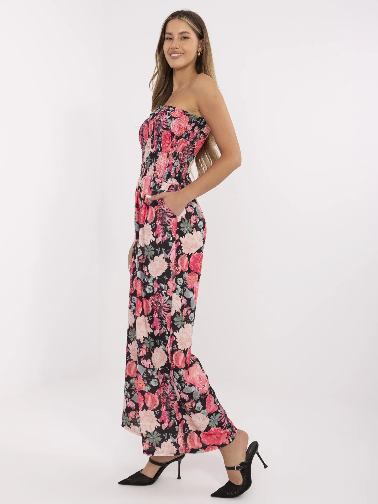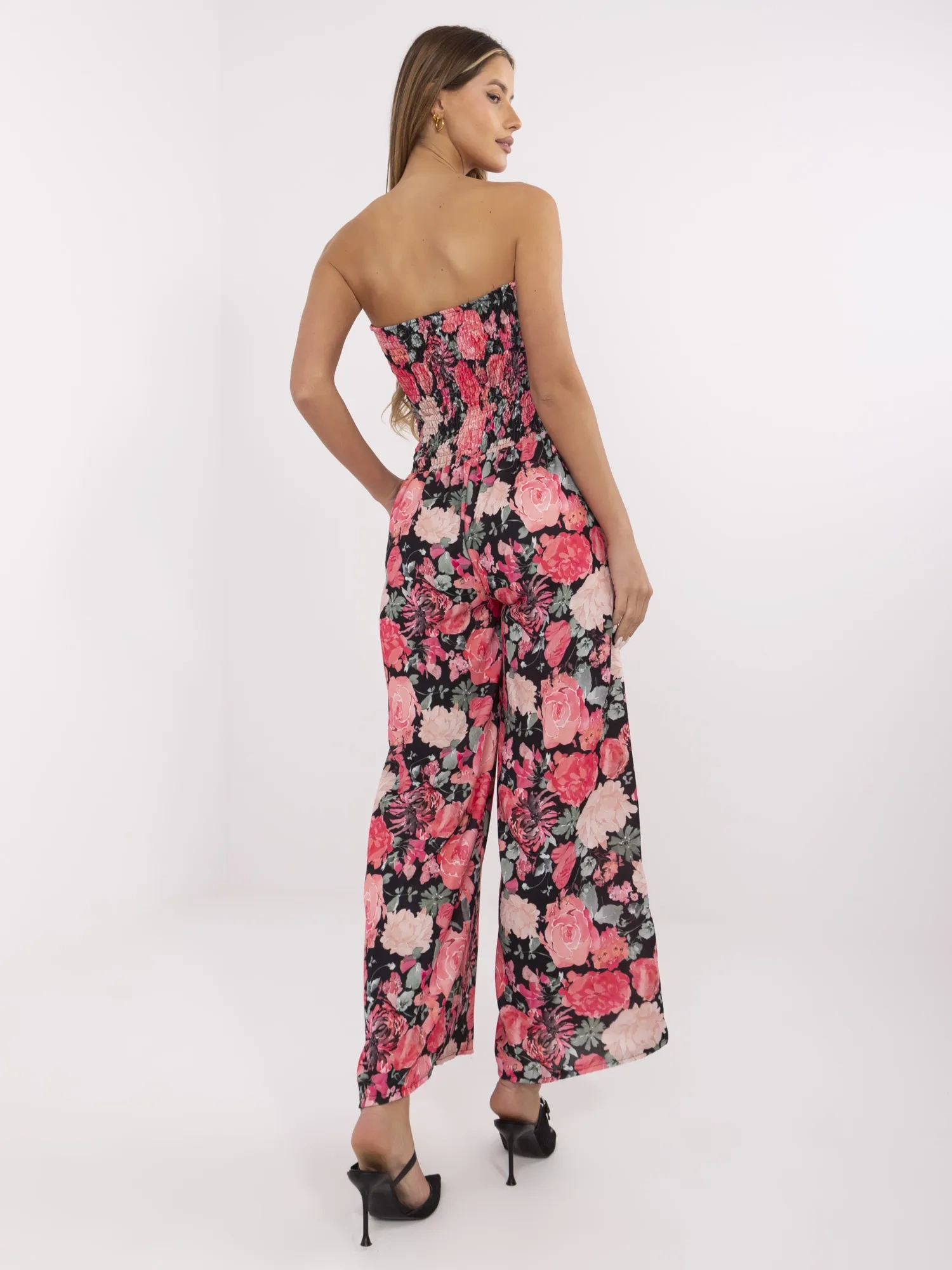 Damski kombinezon bandeau w kwiaty czarno-czerwony