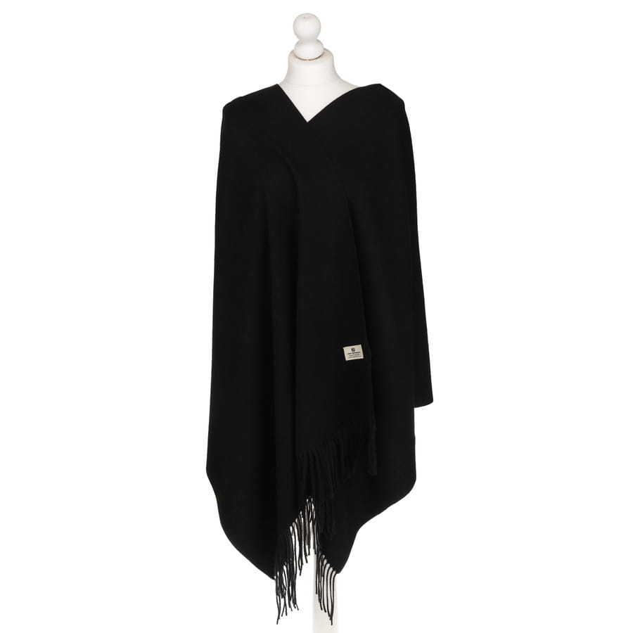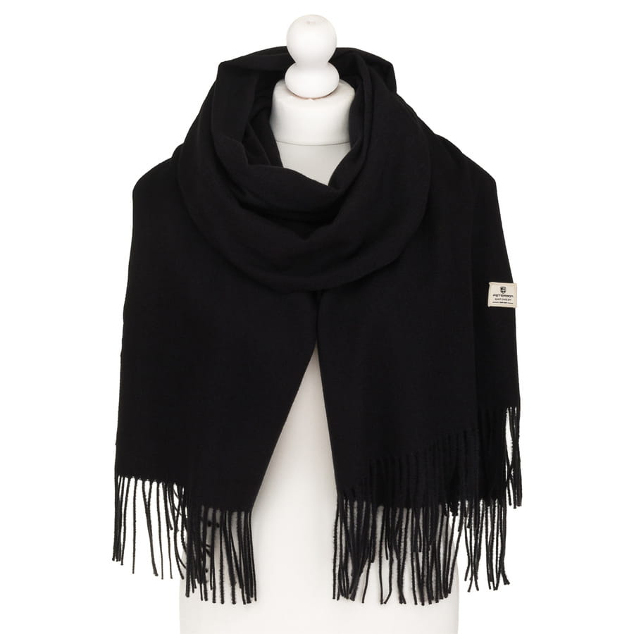 Stylowy szalik damski w czarnym kolorze, wykonany z materiału z dodatkiem wiskozy. Bardzo uniwersalny, świetnie sprawdzi się do stylizacji casualowych, jak i na specjalne okazje.