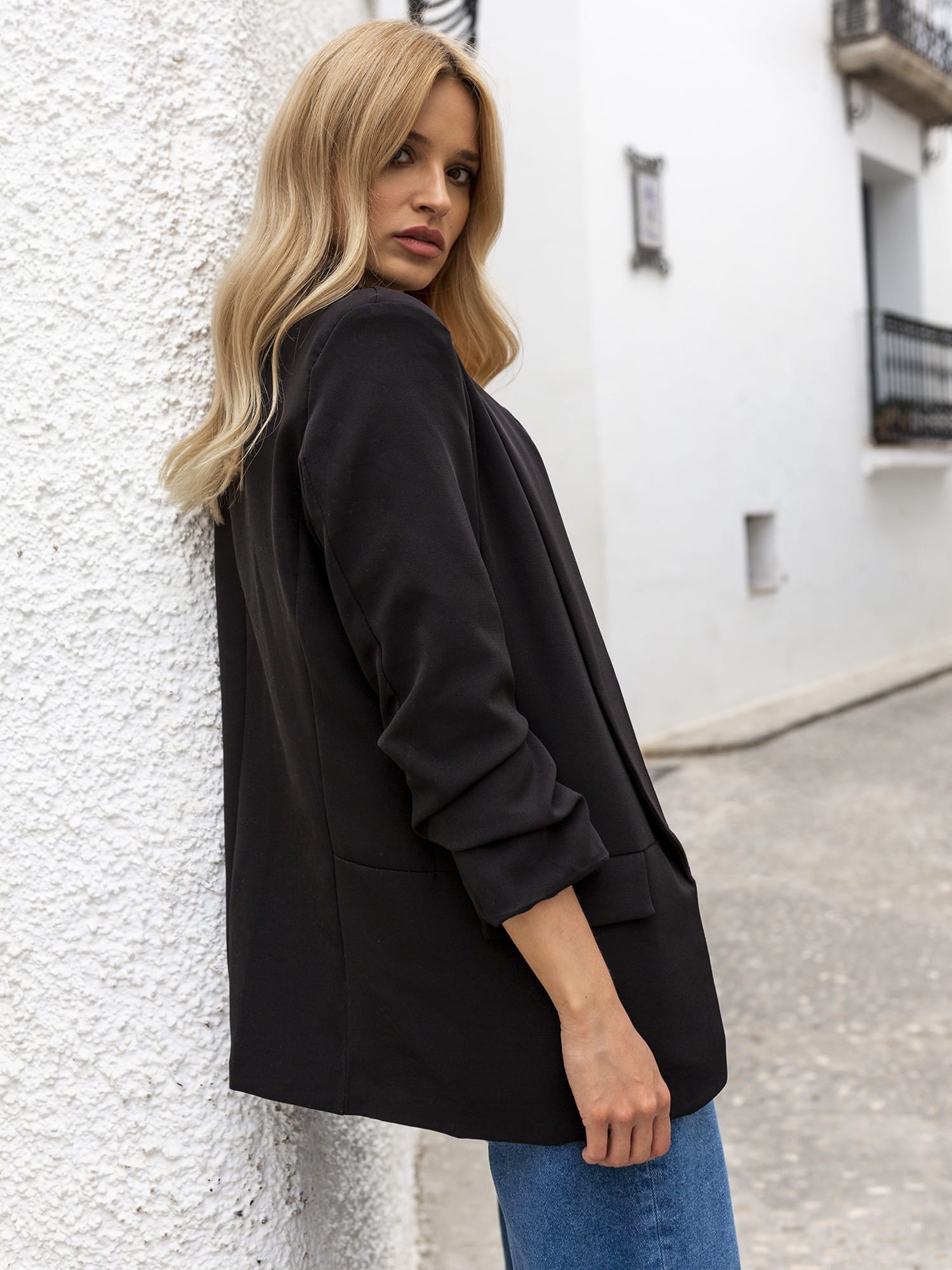 Ta damska marynarka w kolorze czarnym to nasz bestseller. Tą marynarkę z powodzeniem wykorzystasz na co dzień, na spotkania ze znajomymi, na spacer, na zakupy, jak również do pracy, czy na bardziej wizytowe okazje.