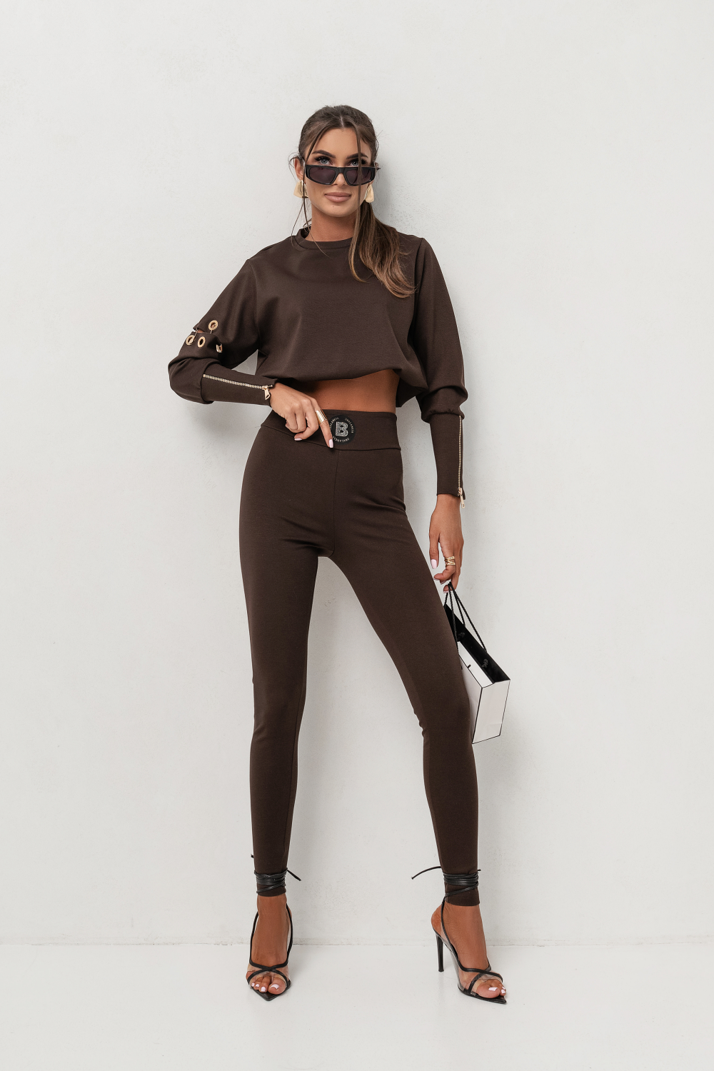 Komplet premium damski w głębokim, czekoladowym odcieniu brązu to stylowa propozycja dla kobiet eleganckie kolory. Nasycona barwa dodaje stylizacji klasy i doskonale sprawdza się zarówno w dziennych zestawach, jak i w bardziej dopracowanych lookach na wieczór. To komplet, który przyciąga uwagę, pozostając ponadczasowy.