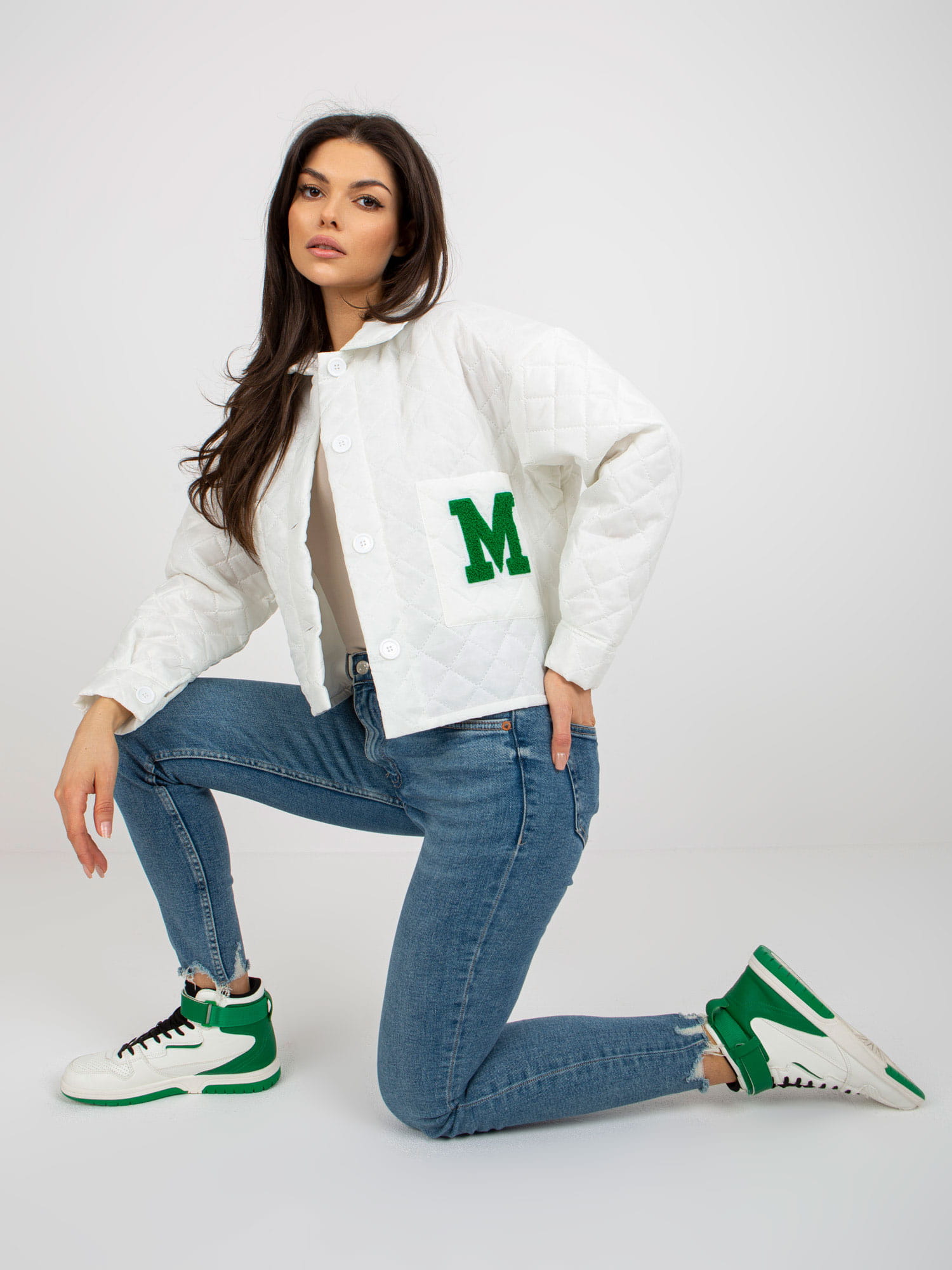 Jeśli szukasz praktycznej, stylowej, a zarazem modnej kurtki to nasza pikowana kurta ecru z naszywką będzie najlepszym rozwiązaniem.