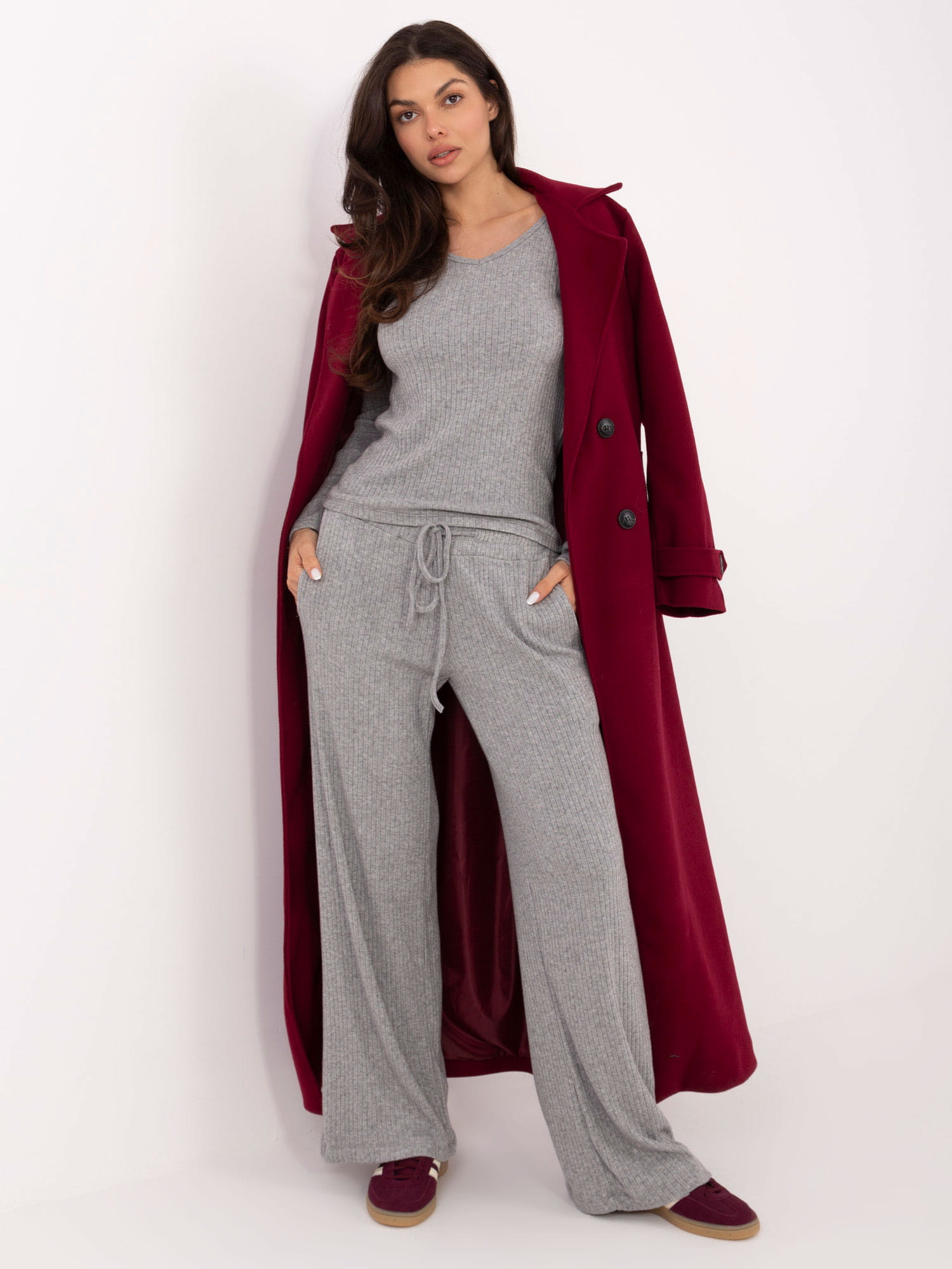 Szare, dzianinowe spodnie w szeroki prążek to idealne uzupełnienie Twoich swobodnych stylizacji w casualowym stylu na codzienne wyjścia i okazje.